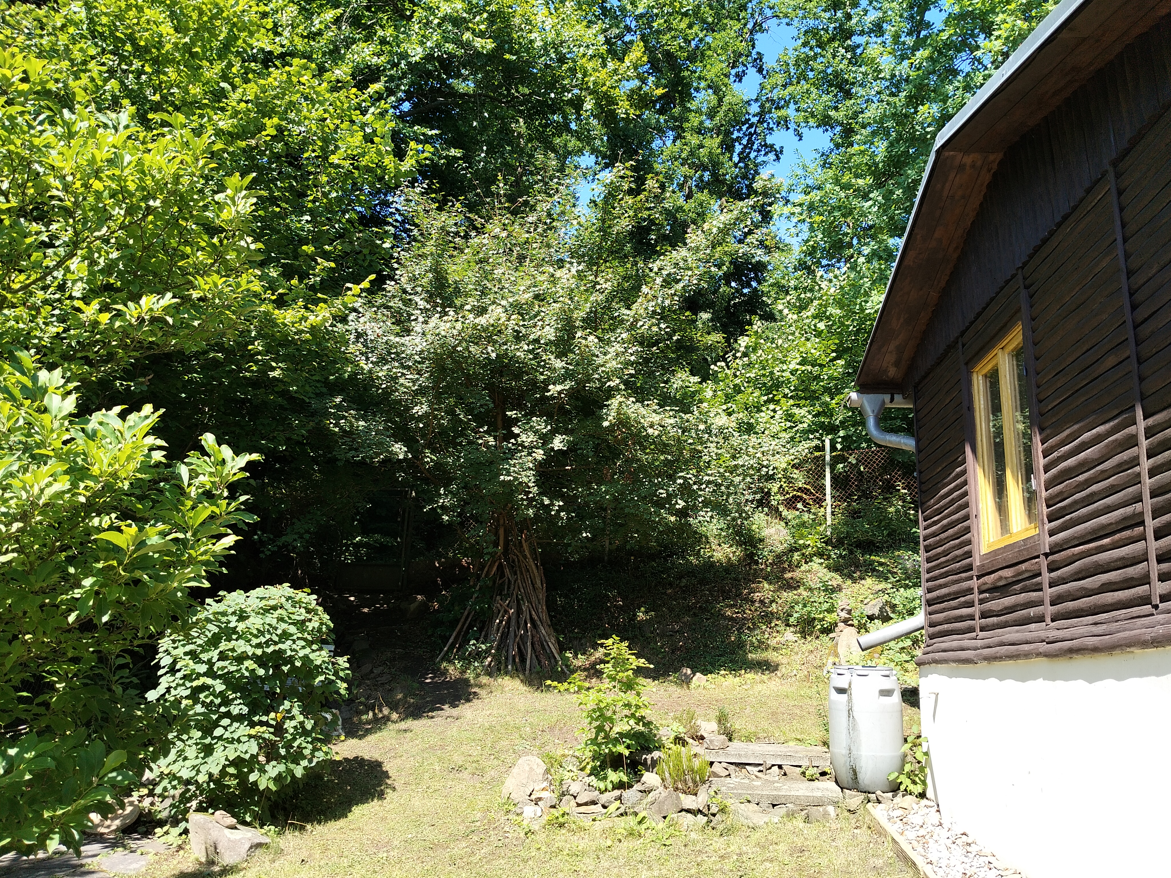 Oplocený pozemek 381 m² (z toho 100 m² v pronájmu od obce za symbolický poplatek)